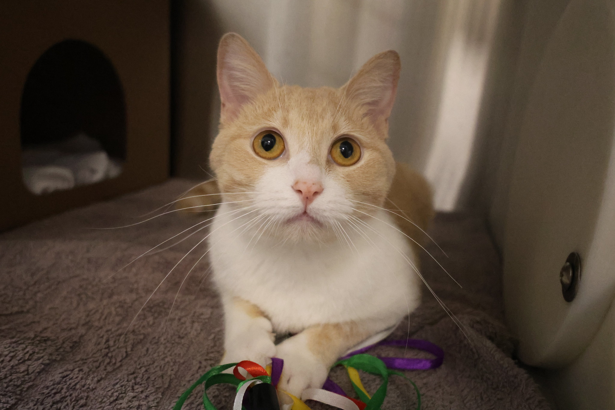 The staff at the OHS call me a Star! Stars tend to be self-starters and like to spend part of their day on independent activities, like exploring every nook and cranny of your home! They also enjoy time with their family, but usually on their own terms. Their favourite family activities may include playing with engaging toys, participating in fun training games, or curling up for a nap somewhere close by. Stars are usually pretty resourceful and like to figure out how things work, so they benefit from places to explore and perches near windows. Stars may also be good candidates for harness training and leash walks outdoors! If you're looking for an entertainer with loads of personality, a Star might just be the purrfect match for you!