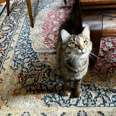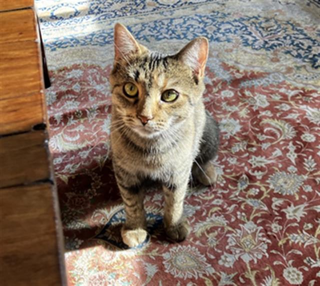 I'm a domestic shorthair kitty with a beautiful torbi coat.