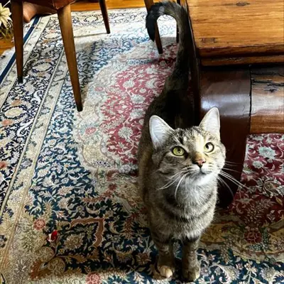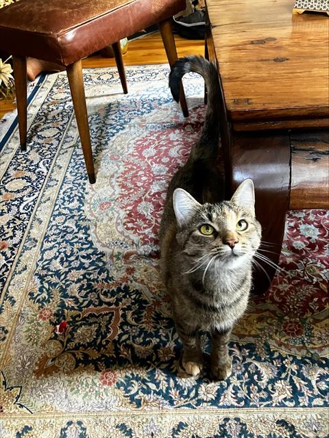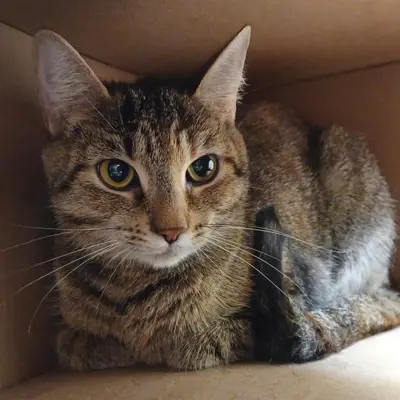 I'm a domestic shorthair kitty with a beautiful brown torbi coat!