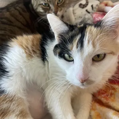 My foster volunteer says: "Millie is more than a cat, she is a companion who quietly fills your home with warmth and comfort. She absolutely loves snuggles and will happily curl up on your lap the moment you sit down and has peaceful presence wherever she goes. She is truly the sweetest foster cats we have ever met. Her love for food and treats is adorable, and she gets excited in the most polite, patient way, never demanding, just happily waiting for her reward. She also does wonderfully with other cats, adapting quickly and bringing a calm, friendly energy into shared spaces. As well with new humans very social."