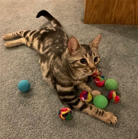 I am shy and fearful! New faces and unfamiliar places scare me! I may hide under the furniture for a few days or so but if you are patient with me, I will come out to play with you because I love to play with crinkle and sponge balls (my favourite)! I also love a good head bump and chin scratch! It will take time and love for me to come out of my shell and become affectionate as I need to get to know you and my new home, at my own pace.