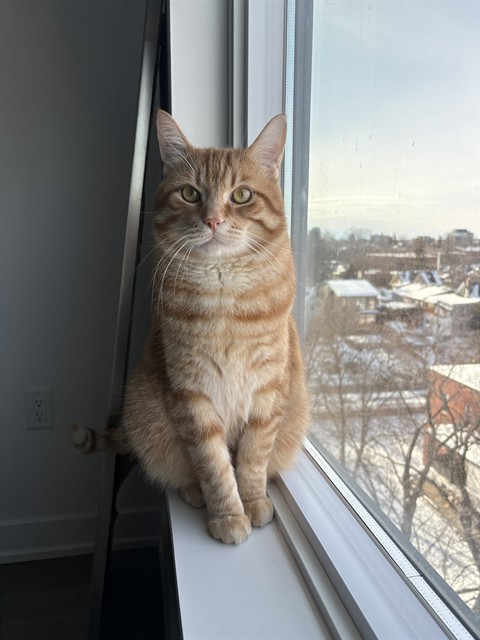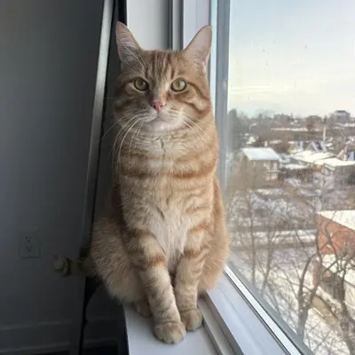 I'm a domestic shorthair kitty with a beautiful brown orange tabby coat.