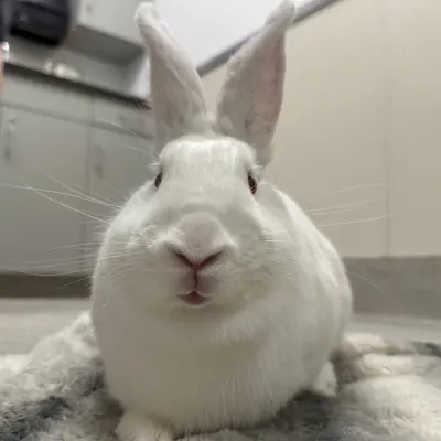 I'm a white American shorthair rabbit.