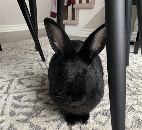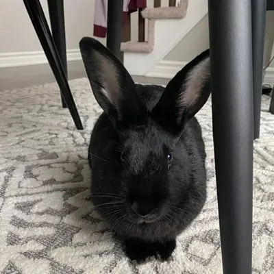 I'm an American rabbit with a beautiful black coat.
