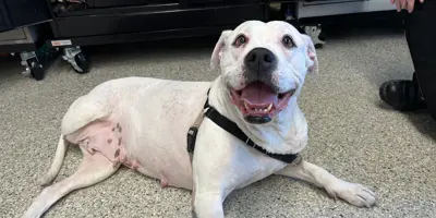 She needed surgery, fostering, daily medical care — and after all that, the veterinary team still had to amputate her leg. She has battled allergies, chronic ear infections and a fear of strangers.