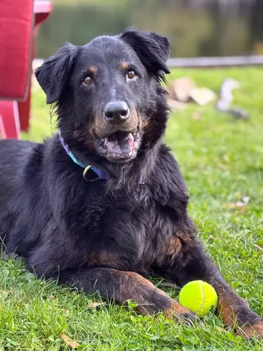 Fast forward to today. Dexter is now 12 years old and while he still loves a good game of fetch, he’s no longer the tireless ball-chaser he once was. A few tosses and he’s happily ready to trade his ball for cuddles. He’s gentler, calmer and somehow even more loveable, proving that his golden years are just as full of joy, just in a slower, sweeter way.